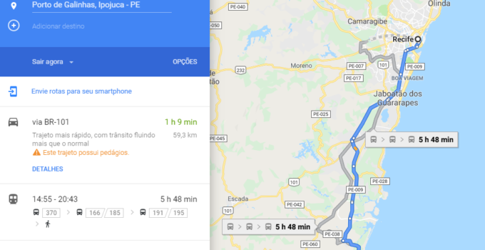 A distância entre a cidade de Recife e a cidade de Porto de Galinhas é de 59,3 km. O tempo estimado do percurso da viagem entre as duas cidades é de aproximadamente 1 hora. …