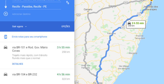 A distância entre a cidade de Maceió Alagoas e a cidade de Recife Pernambuco é de 258 km. O tempo estimado do percurso da viagem entre as duas cidades …